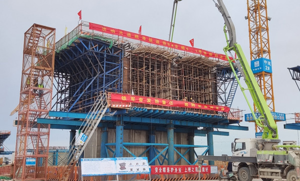 濱響大道北疏港航道大橋進入主梁施工