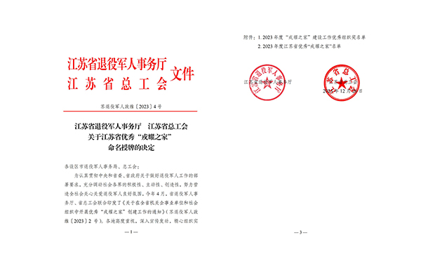喜報(bào)!灌東鹽場(chǎng)獲評(píng)2023年度江蘇省優(yōu)秀“戎耀之家”稱號(hào)